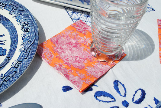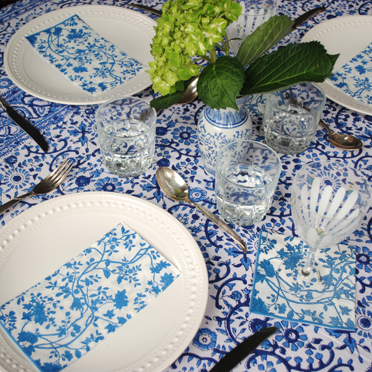 C Initials Letter Monogram Paper Napkins - Blue and White Scalloped
