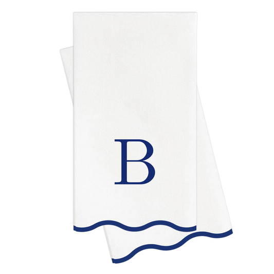 B Initials Letter Monogram Paper Napkins - Blue and White Scalloped