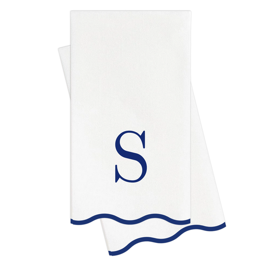 S Initials Letter Monogram Paper Napkins - Blue and White Scalloped