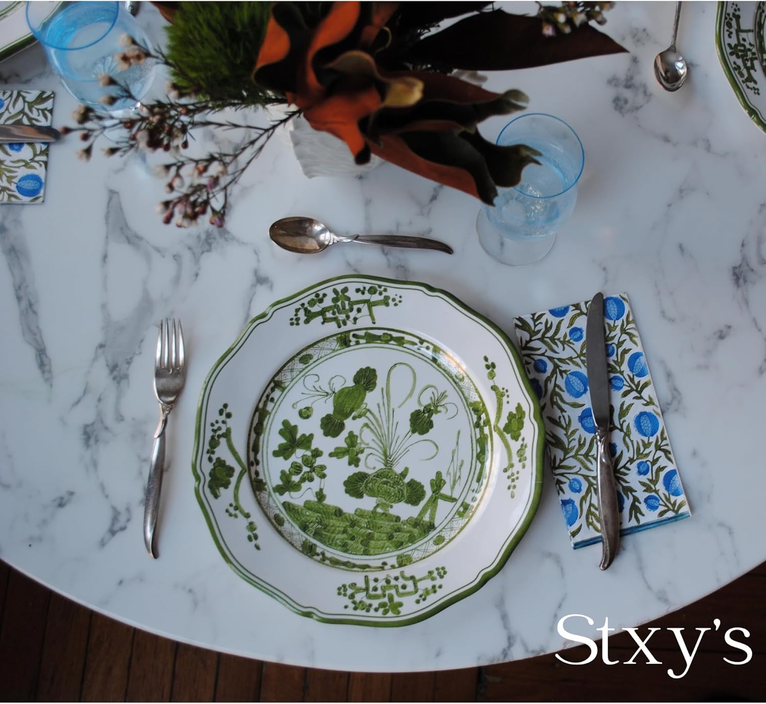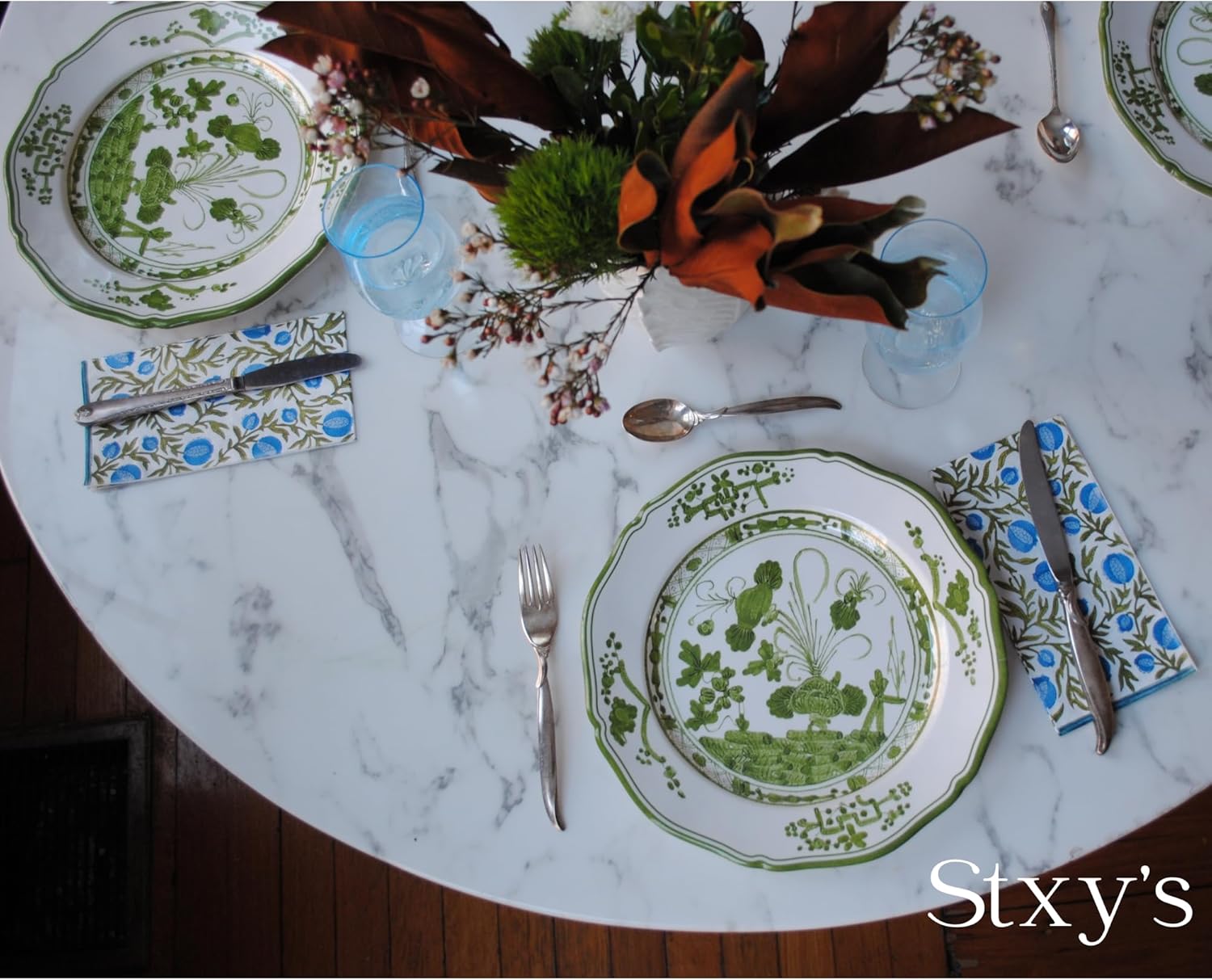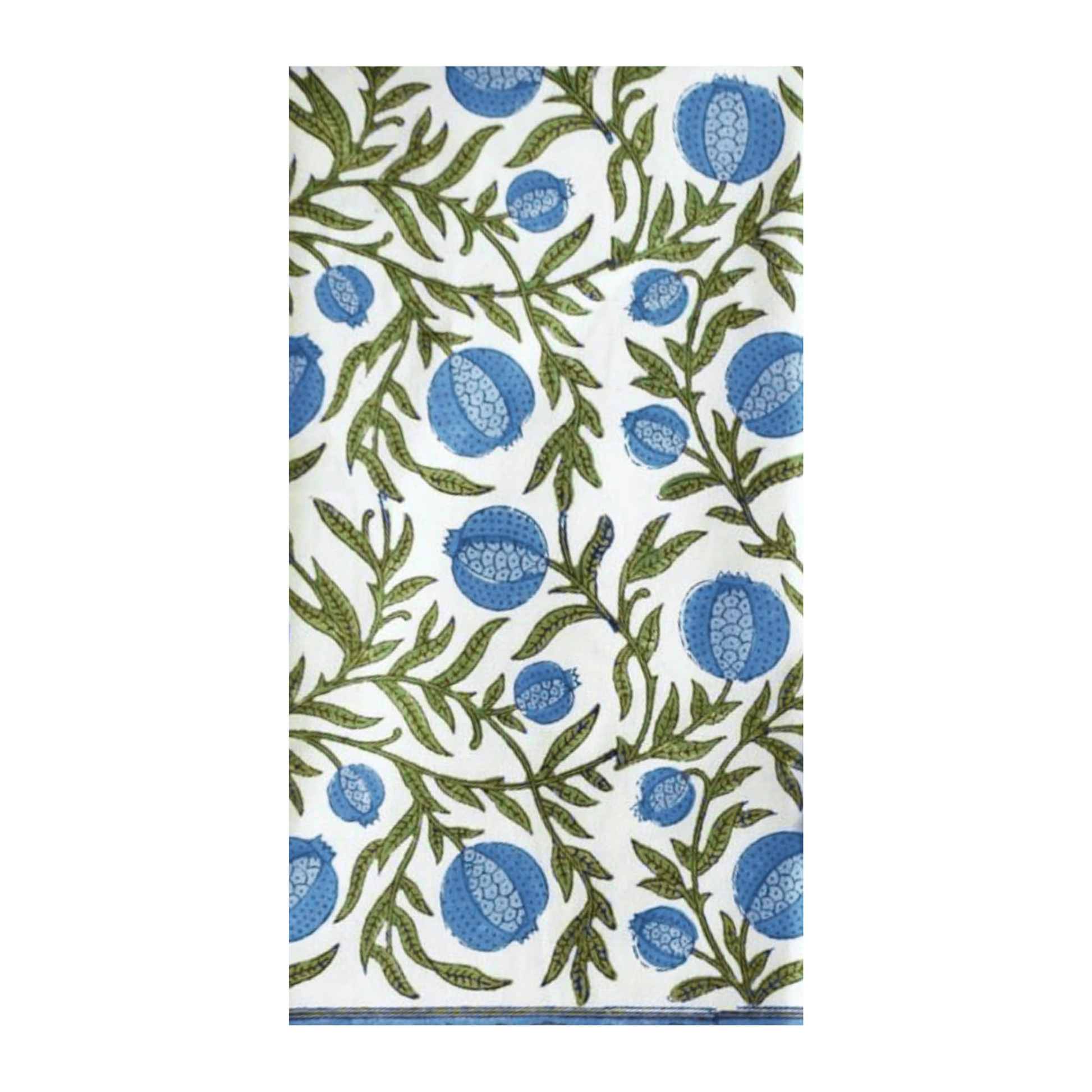 Blue Pomegranates Paper Napkins (Block Printed) (green, blue, & white) - Guest or Dinner Napkins